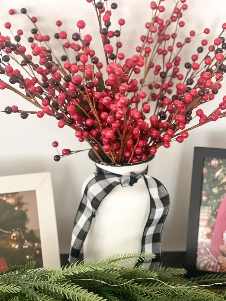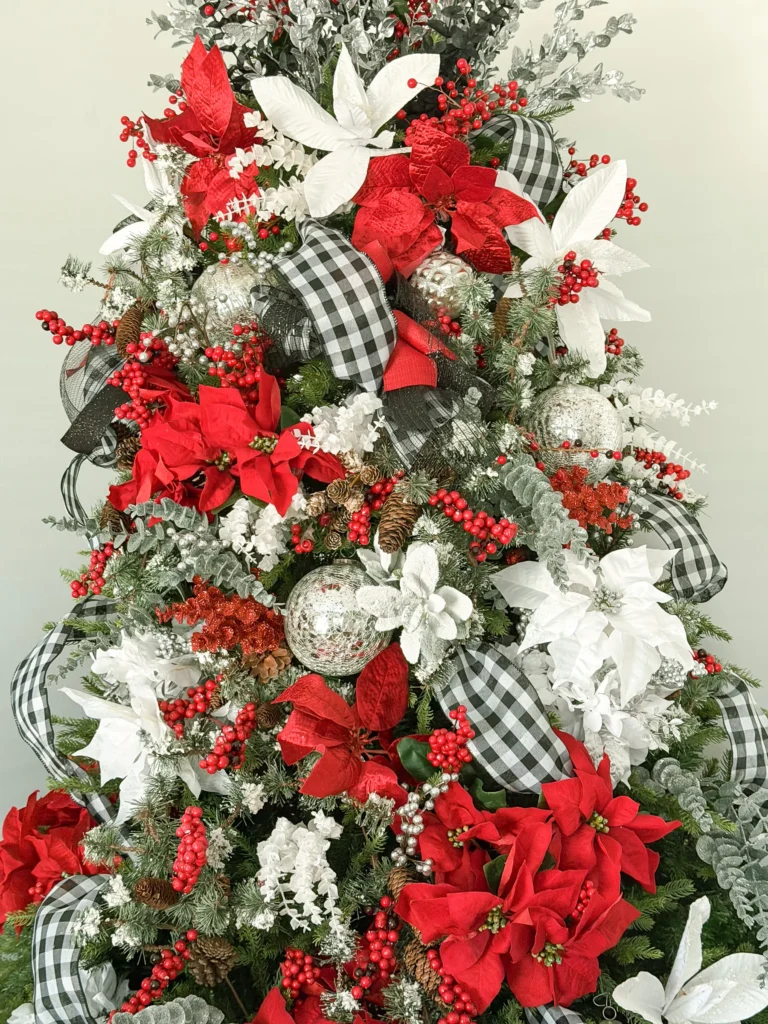 I knew I wanted something classic, but not stiff. Cozy, but not overly traditional. I landed on silver and red, grounded with a black and white checkered ribbon that added just enough farmhouse charm. It felt timeless with personality, which is always the goal.