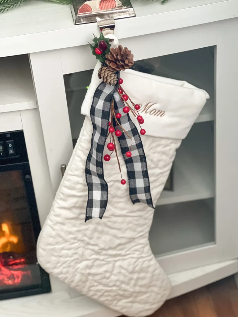 I carried it beyond the tree and used it in stockings, centerpieces, and small decorative moments throughout the house. It tied everything together visually and made the entire space feel intentional.